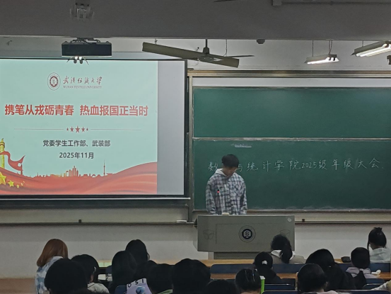 于三号教学楼118教室面向全体大一新生隆重举行征兵入伍宣讲会。本次宣讲会由学院兼职辅导员孙老师出席指导,一班班长穆思安同学担任主讲,为初入大学校园的同学们带来了一堂生动而深刻的国防教育课。