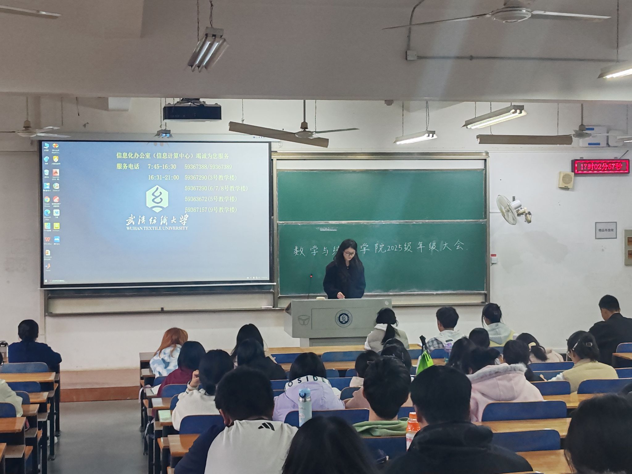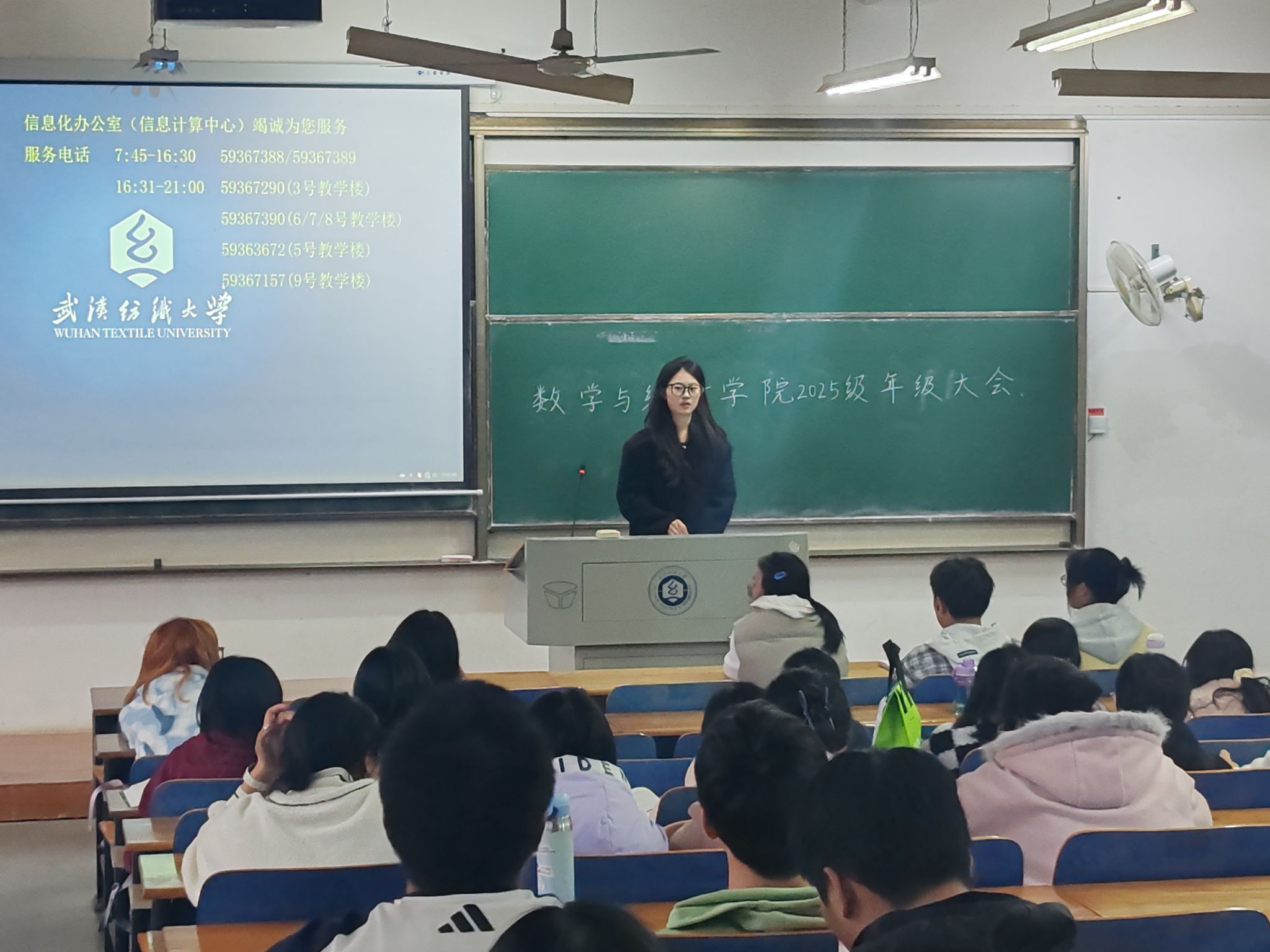 25级学生、辅导员曾琦在武汉纺织大学03-118教室隆重召开了本学期年级大会。本次大会由年级兼职辅导员孙海琴老师主持,全体同学参会。