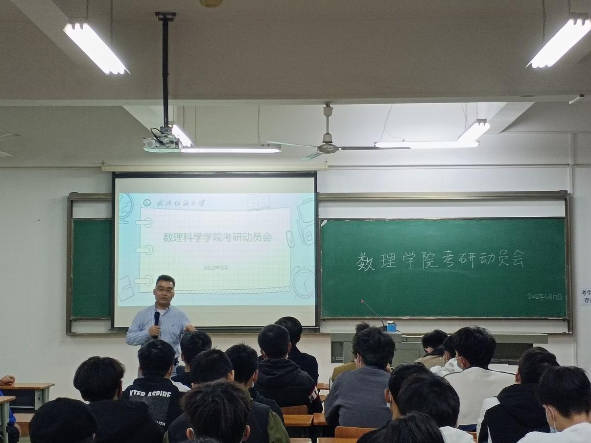 张本龚通过大量详实的数据,为大家分析了考研形势与前景。他详细梳理了学院近年来考研报名人数、录取人数、复试分数线以及毕业生就业薪资情况,让同学们深刻感受到了考研的必要性,以及考研的激烈竞争。并为大家详细描绘了学院十四五及今后一段时期快速发展的蓝图,介绍了学院强大的师资力量,欢迎同学们报考本校。他介绍了学院本科生导师制各项举措,希望大家既要勇于追梦也要找准自身定位,让自己4年的大学生涯熠熠生辉。