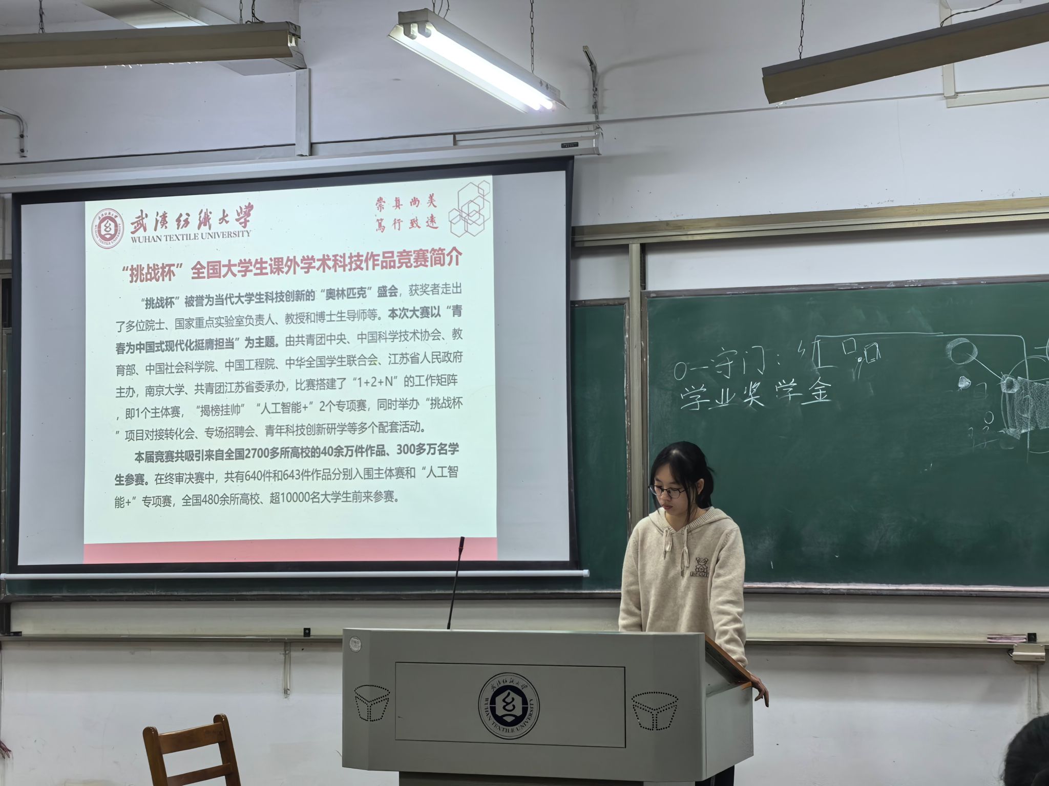 于2025年11月在崇志楼开展了以“赋能学科竞赛 助力成长成才”为主题的大学生竞赛专题班会。此次班会覆盖全院各年级学生,班会由各班班长主持。