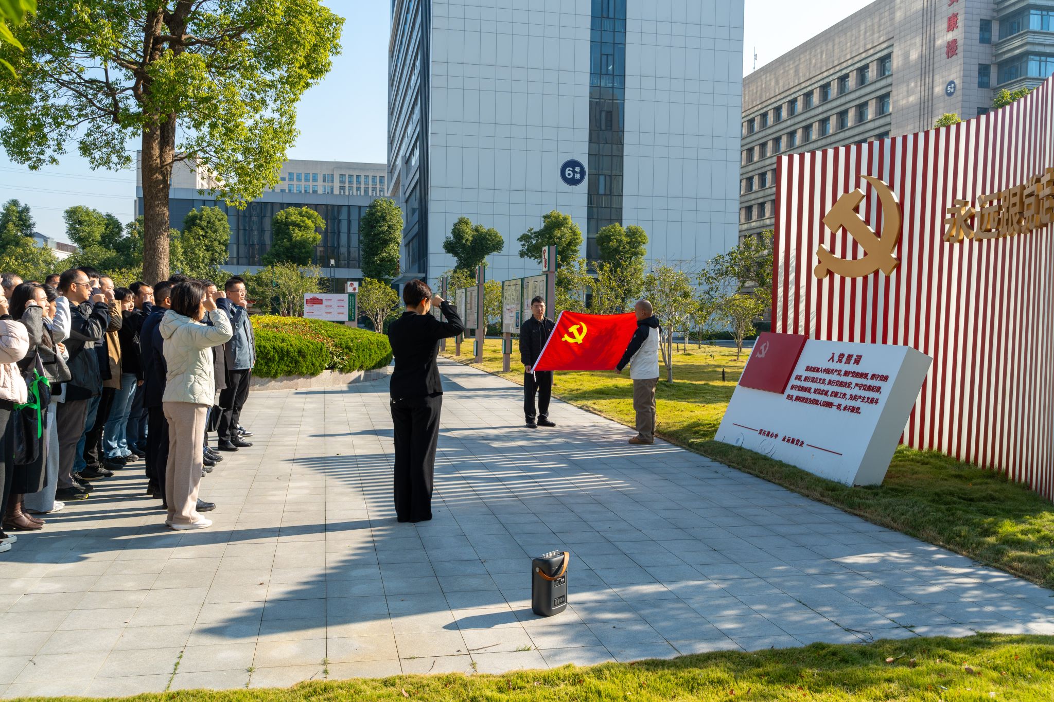参观结束后,在武汉医药卫生学会联合办公室党委副书记、纪委书记李文的带领下,全体党员庄严肃立,举起右拳重温入党誓词,铮铮誓言凝聚起“为人民健康服务”的共同信念。