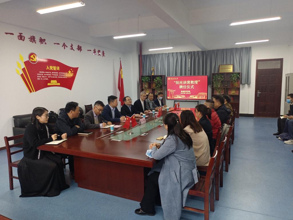 10月6日下午,武汉纺织大学“阳光讲席教授”聘任仪式在崇文楼102A会议室举行。武汉大学刘威教授受聘为我校“阳光讲席教授”。校党委书记田辉玉教授出席聘任仪式,并为刘威教授颁发聘书。人事处副处长袁国梁、成人直播平台班子成员和骨干教师参加了聘任仪式。聘任仪式由成人直播平台党委书记段溢波主持。