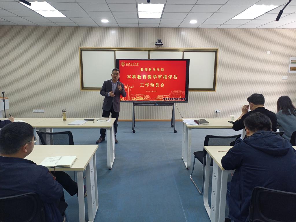 汪胜祥首先传达学校本科教育教学审核评估工作动员会精神。他指出,新一轮本科教育教学审核评估对于学院既是挑战更是机遇,是对成人直播平台