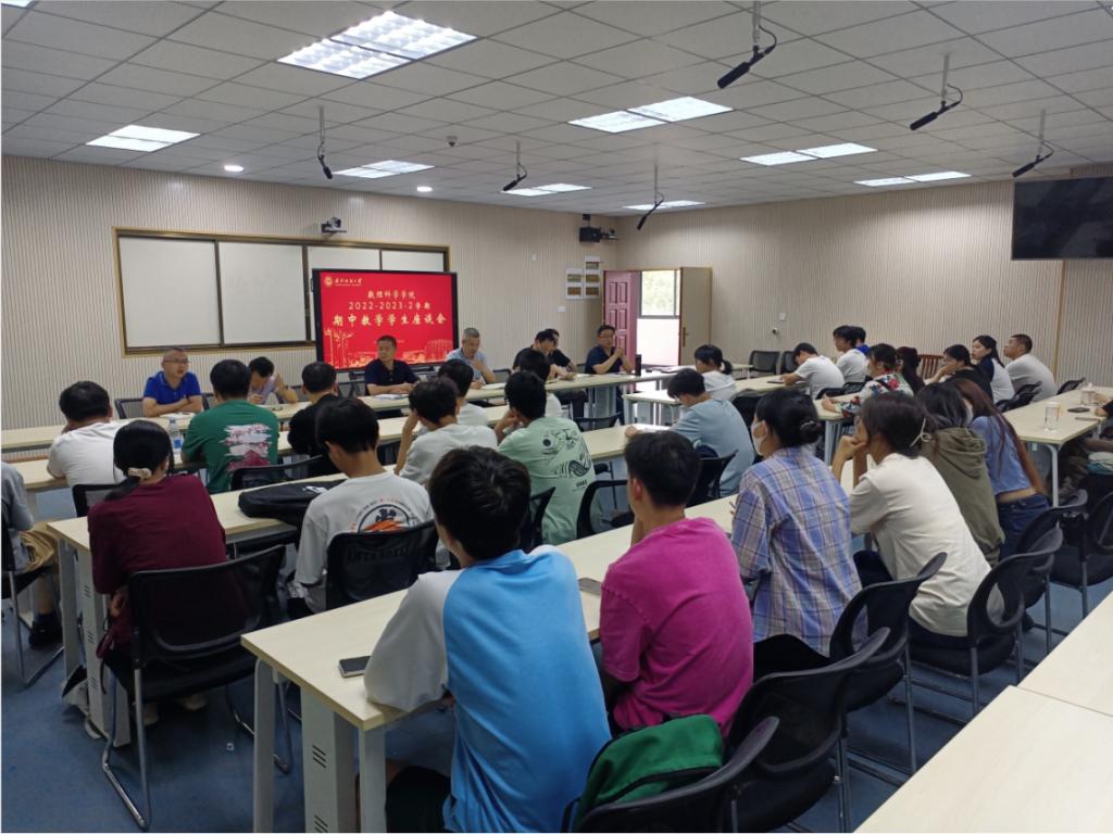 在学校深入开展学习贯彻习近平新时代中国特色社会主义思想主题教育之际,为落实“以本为本”的理念,突出“为学生服务”的宗旨,关心了解学生的思想动态和学习生活状况,收集学生对学院教育、管理、服务等方面的意见和建议,增强学院教育教学质量和教学管理服务工作的针对性和实效性,学院于5月16日在四号教学楼205教室召开了“成人直播平台2022-2023学年第二学期期中教学学生座谈会”。学院党委书记段溢波、副院长许明耀、副书记陈国鹏、各系(中心)主任和学院本科生4个年级16个班的32名学生代表参加了座谈会,会议由副院长许明耀主持。