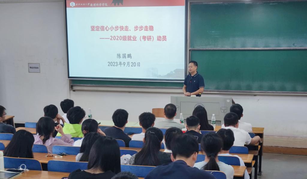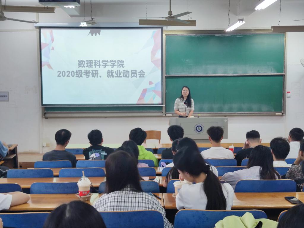 副院长郑仟首先开始考研动员。她通过数学学科的重要性、数学学子毕业去向、成人直播平台概况