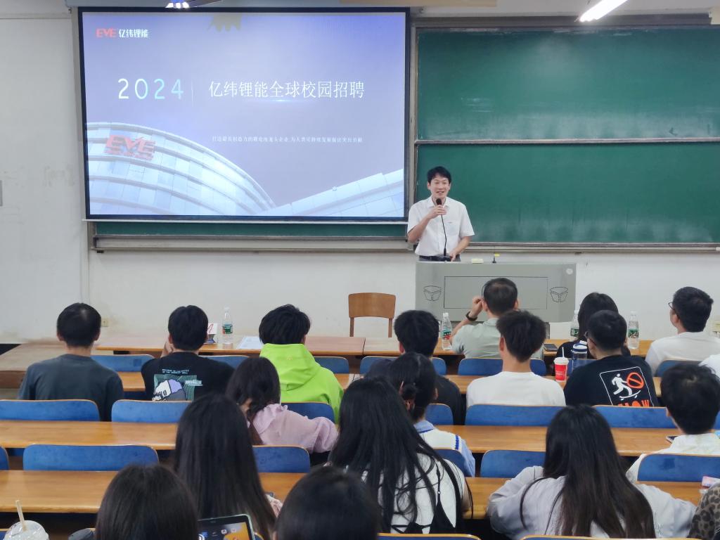 会议期间,金博(教培行业)、亿纬锂能股份有限公司人事相关负责人进行了招聘宣讲,在座学生跃跃欲试,现场有15名同学通过面对面沟通,取得了面试资格,效果良好。