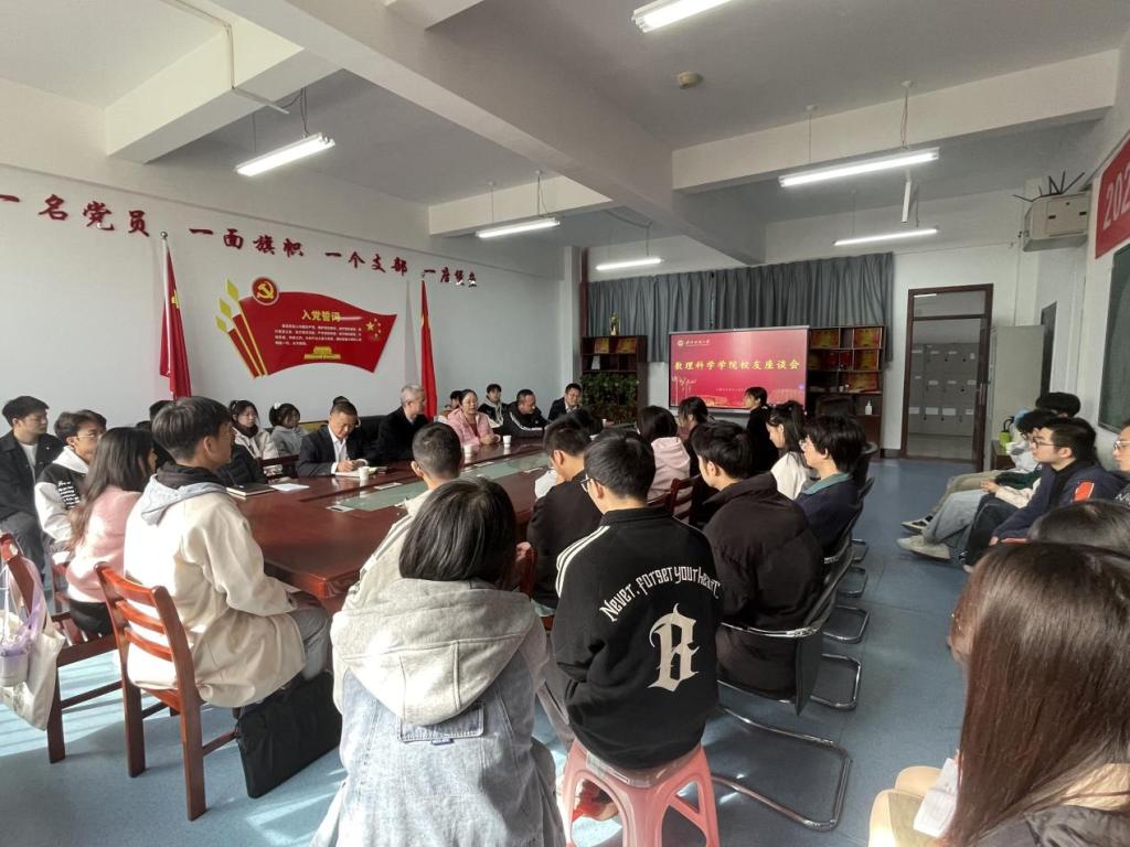 2023年11月18日,成人直播平台2001级信科专业校友林朝晖、2004级应数专业校友吴会虎、2008级信科专业校友李志礼回到母校,于四号教学楼102室和在校学子分享人生经验,共话成长,勉励大家要立目标、拓胸襟、有韧性、敢奋斗。成人直播平台党委书记段溢波出席并主持座谈会。学院有关领导、老师,21级、22级在校本科生,以及研究生代表参加座谈会。