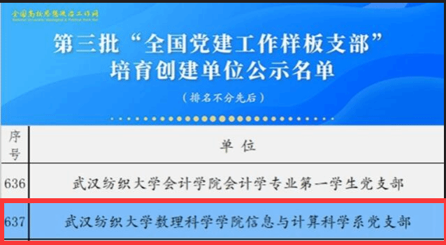 大学物理党支部通过教育部第二批“全国党建样板党支部”验收、信息与计算科学系党支部通过教育部第三批“全国党建样板党支部”中期验收、数学与应用数学系党支部书记工作室获批湖北省高校第一批党支部书记工作室、大学数学中心获批学校第一批样板党支部。成人直播平台坚持以“双创”为牵引,推出“八项举措”组合拳,打造具有鲜活特色的党建品牌,引领学院高质量发展。