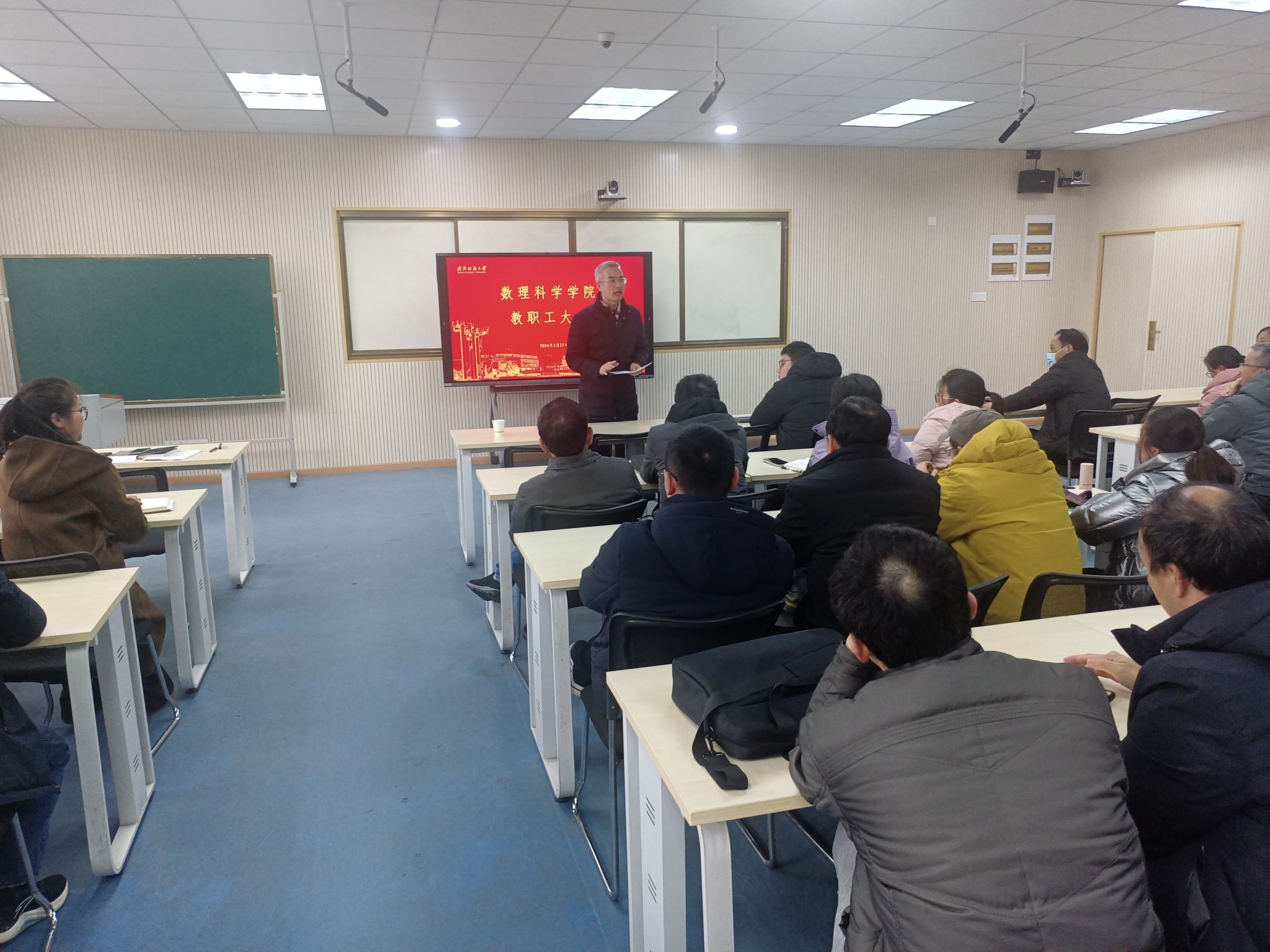 院长汪胜祥解读了学校第二届教职工暨工会会员代表大会第三次会议《解放思想,真抓实干,奋力推进“美好纺大”高质量发展》的学校工作报告。汪胜祥鼓励大家要以“美好纺大”目标为导向,勤于研究、勇于担当、敢于作为、敬业专业。同时强调要紧密围绕学校发展目标,扎实推进各项重点工作落实落地,积极培育产出标志性成果。随后布置了2024年学院学科建设、研究生培养、人才引育、制度建设等重点工作。副院长许明耀、郑仟、副书记陈国鹏分别布置了教学、科研和学生工作。
