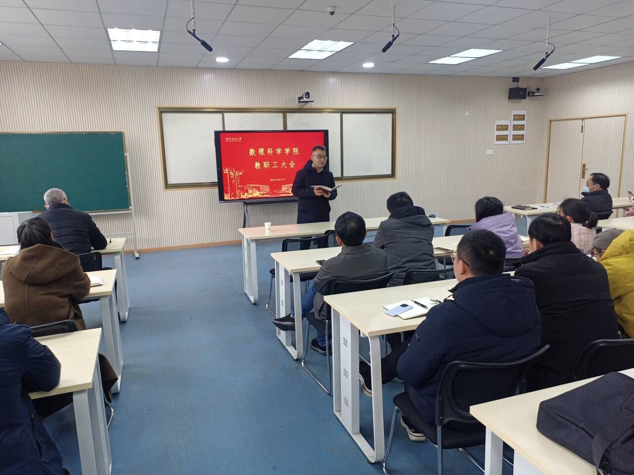 党委书记段溢波结合学校第二届教职工暨工会会员代表大会第三次会议等会议精神,提出工作要求:一是识势而动。势,国家而言,就是立足新发展阶段,完整、准确、全面贯彻新发展理念,构建新发展格局,推动高质量发展;加快建设教育强国;大力推进双一流建设。学校而言,就是依“特”向优,克服妄目自信,推进“三重一大”。二是借势而进。以“双院牵引、双轮驱动、百名师资、千人规模、科技卓越”为牵引,加大人才引进、团队建设、资源配置、学科建设力度。三是造势而起。加强文化建设,营造尊重人、理解人、实现人的氛围,营造干事创业氛围。四是乘势而上。解放思想、真抓实干,对标对表、保持定力,守住底线、防止发生意识形态、安全稳定、师德师风、廉洁自律、酒驾醉驾等一票否决问题,形成合力、砥砺奋进,推动学院内涵发展。