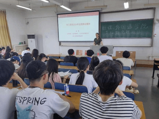 5月23日下午,校党委常委、组织部部长金艳教授以“学习贯彻2024年全国两会精神”为题,在三号教学楼516室为成人直播平台、微电子学院和外国语学院学子讲授了一堂生动的党课。学院入党积极分子、党委副书记、辅导员参与聆听,外国语学院党委书记胡中原主持学习。