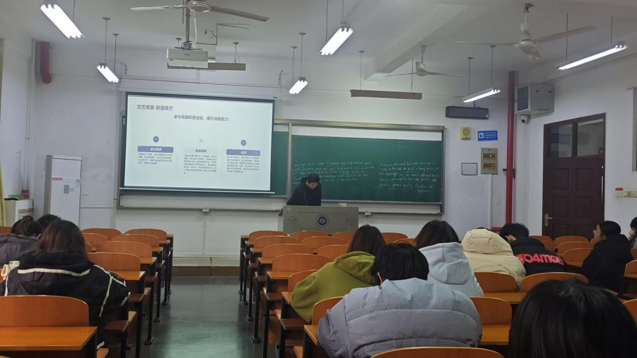 论坛现场,三位学姐各展所长,分享内容各具特色。郭越学姐以“公益同行,成长共进”为主题,结合自身参与学雷锋志愿活动、学院迎新志愿服务等经历,讲述了在公益实践中凝聚团队力量、践行责任担当的故事,还细致讲解了校园公益活动的策划与执行技巧,让同学们对公益服务的价值与开展方式有了全新认知;范兴莹学姐以“以艺为翼,逐光而行”为题,分享了自己在文艺领域的探索历程,从文艺竞赛备赛技巧到艺术特长与学业的融合发展,鼓励同学们以艺术为翅膀,在数理专业学习之外拓展自身成长边界;张雅琼学姐聚焦“文体类专项奖学金”申请经验,从奖项申报条件、材料准备要点到个人优势梳理方法,进行了全面且细致的讲解,为学弟学妹们争取奖学金提供了切实可行的指导。