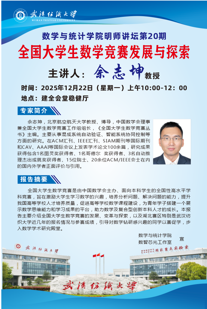 本次讲座不仅加深了师生对全国大学生数学竞赛的全面了解,更极大地激发了大家投身数学学习与科研探索的热情。佘教授的报告既有宏观视野,又有实操指导,为学院的学科竞赛工作指明了方向。
